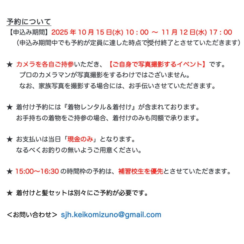 2025年11月15日 七五三写真撮影会を開催します!